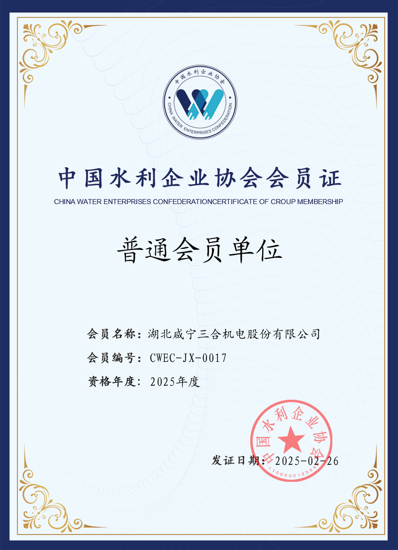 中國水利企業(yè)協(xié)會會員單位證書