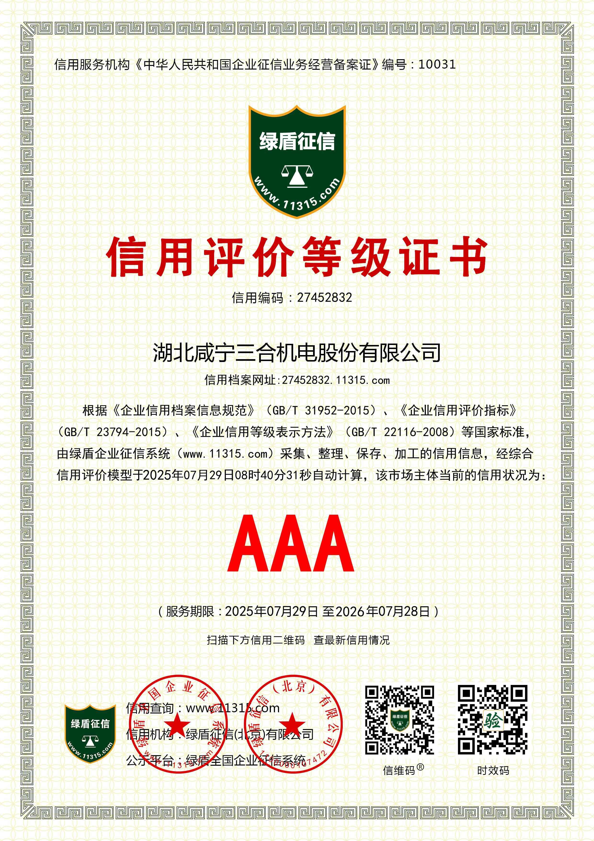 AAA級企業(yè)信用證書