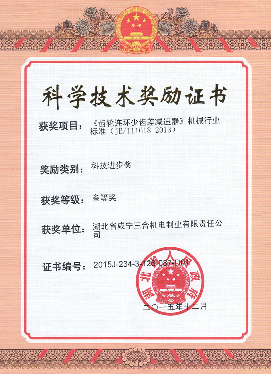 :齒輪連環(huán)少齒差減速器湖北省科技進(jìn)步三等獎(jiǎng)